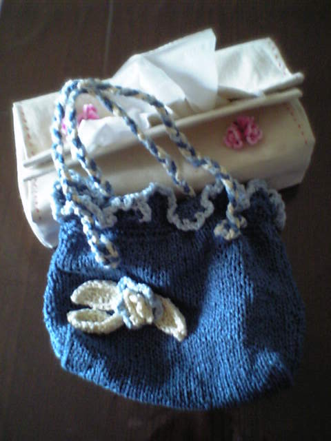 これは、自作ティッシュホルダーと、毛糸のバッグ。