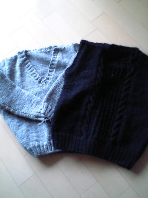 これは、母のために編んだセーターとベストです。